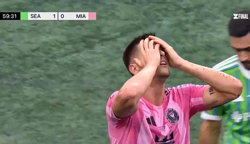 西雅图海湾人用严密的“夹层”防守将他与球队的中前场联系彻底切断。 迈阿密国际的向前传递屡屡受挫,只能频繁回传和横移,进攻陷入停滞。 全队似乎都在等待有人能站出来改变局面,那种迟疑贯穿了整个上半场。