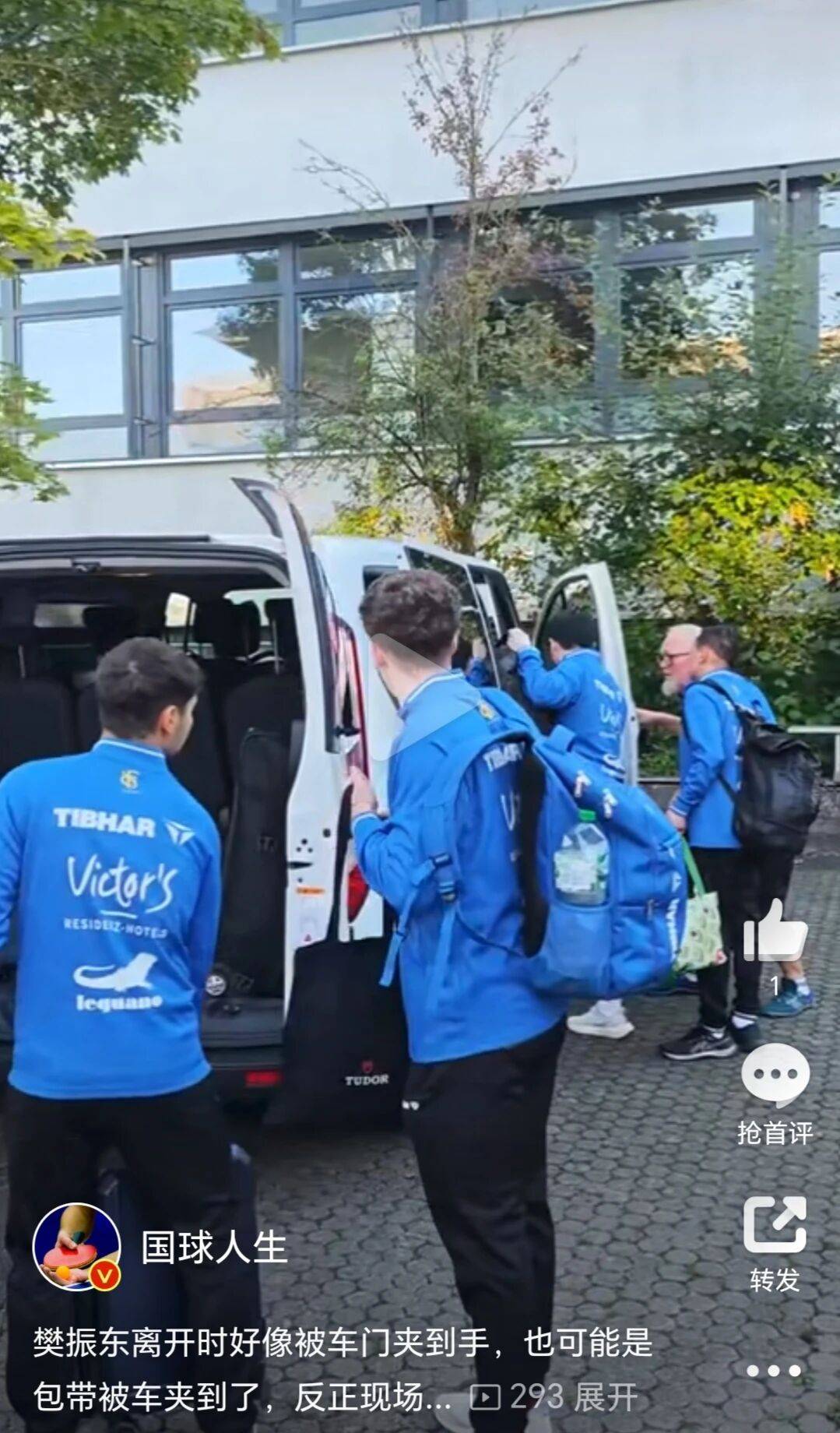 有许多国内球迷因为喜欢樊振东,专程从国内去到德国看樊振东的比赛,从球迷们拍摄的视频看到,在结束第二场比赛离场时,樊振东上车的时候疑似被车门夹到手。